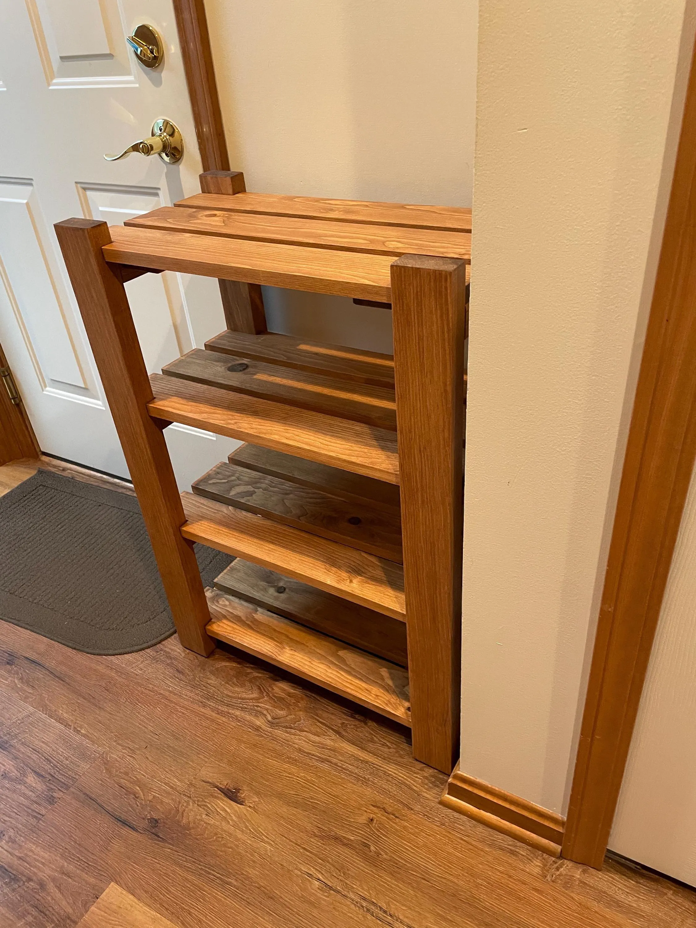 I am thoroughly impressed with the quality and design of these shoe rack. I am also very appreciative of the custom stain color that you used at my request. Thank you so much for your attention to detail.